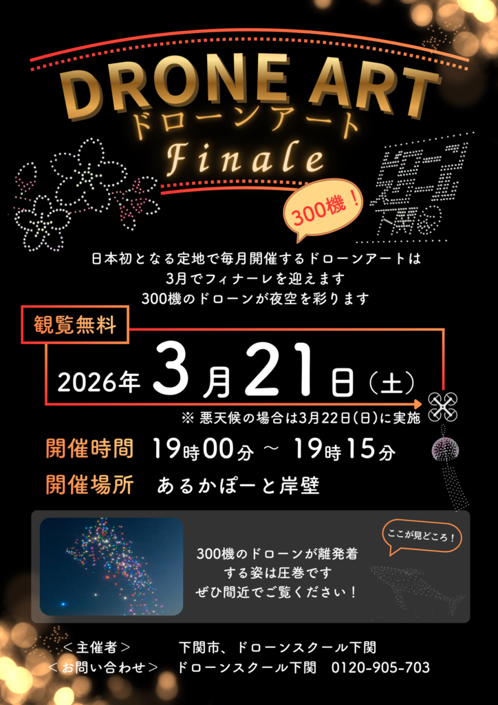 日本初となる、定地で毎月開催するドローンアートが、 3月でフィナーレを迎えます!